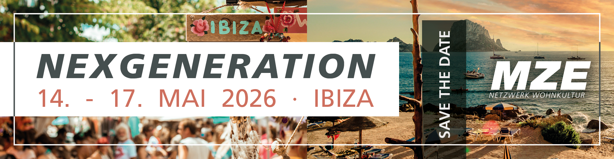 Nach dem großen Erfolg im vergangenen Jahr kehrt NexGeneration 2026 erneut auf die Sonneninsel Ibiza zurück! Vom 14. bis 17. Mai 2026 lädt MZE GründerInnen und NachfolgerInnen der Einrichtungsbranche aus Deutschland, Österreich und Südtirol zur Juniorentagung NexGeneration ins Hotel Eurostars Puerto de Ibiza**** ein.