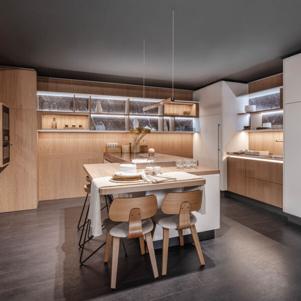 Küchen werden heute zunehmend als offener Lebensraum geplant und stehen in direktem Zusammenhang mit angrenzenden Wohn- und Essbereichen. Über den Zugriff auf mehrere MZE-Fachbereiche können Sie Küchenplanungen sinnvoll erweitern und Kunden vollständige Raumlösungen aus einer Hand anbieten.